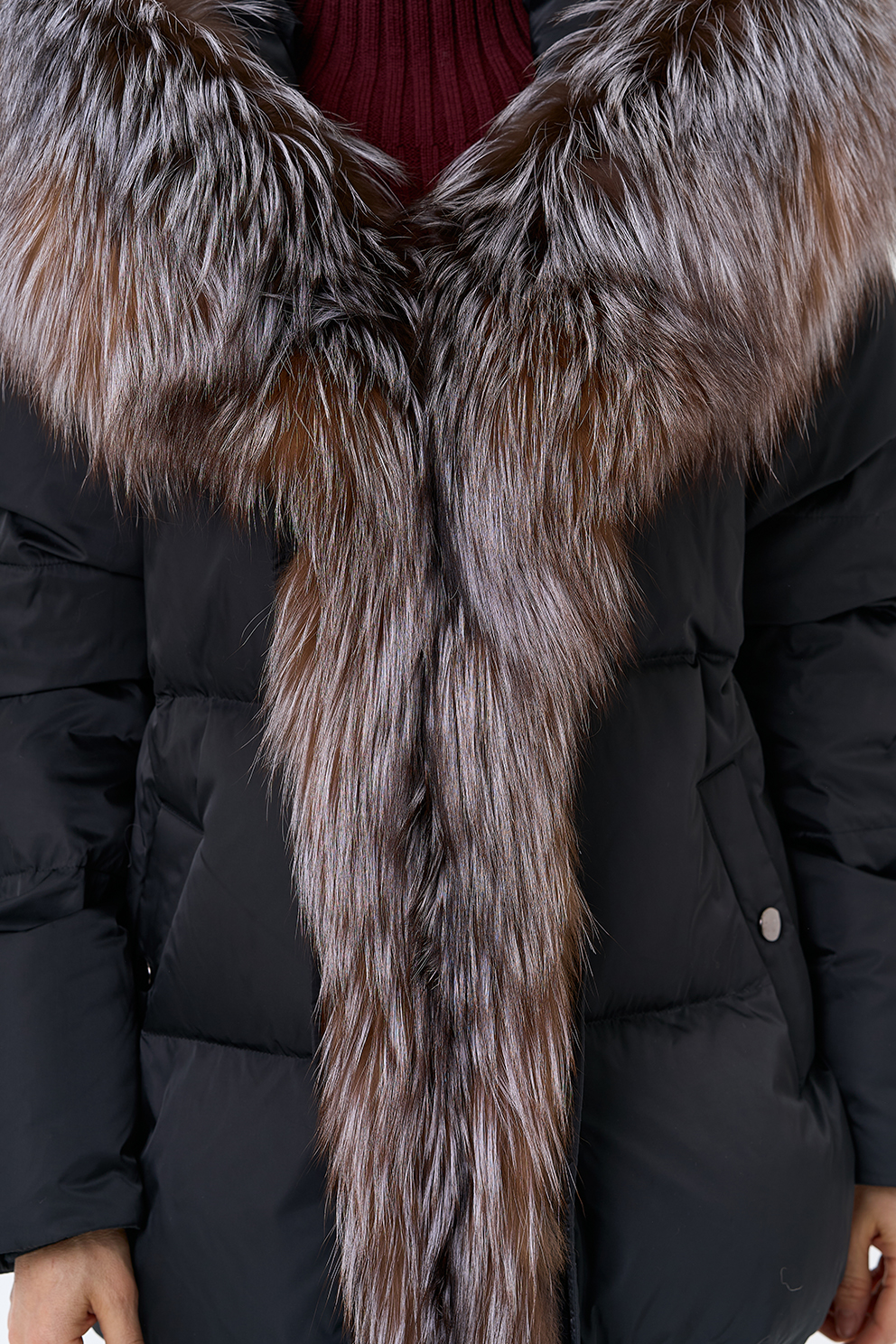 Крой воротника - капюшон, отделка блюфрост
