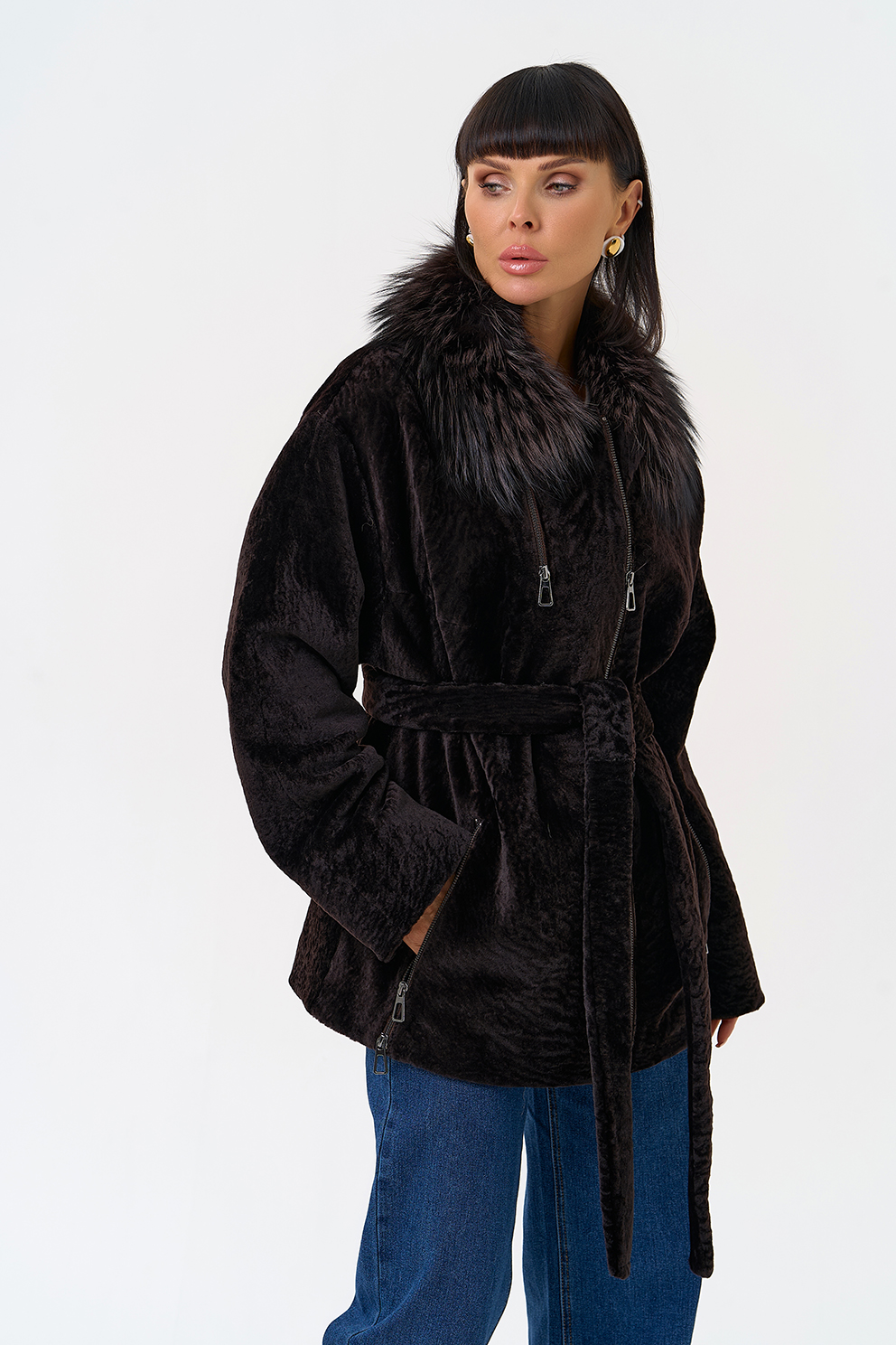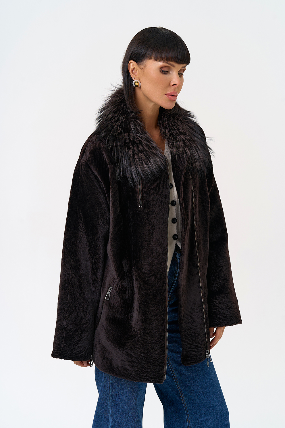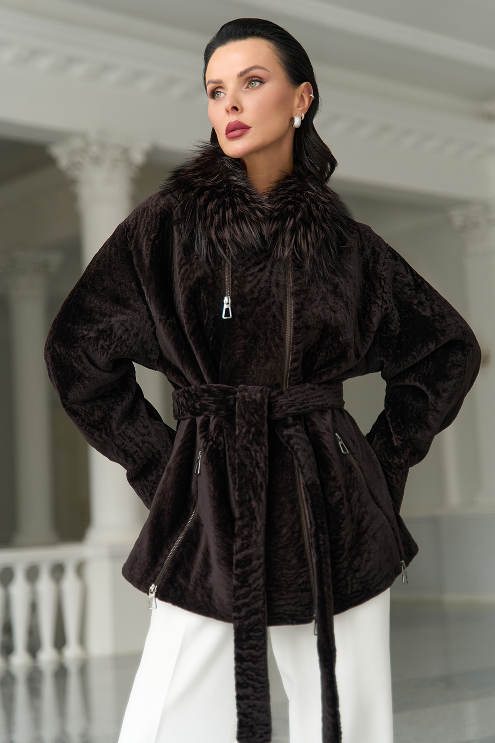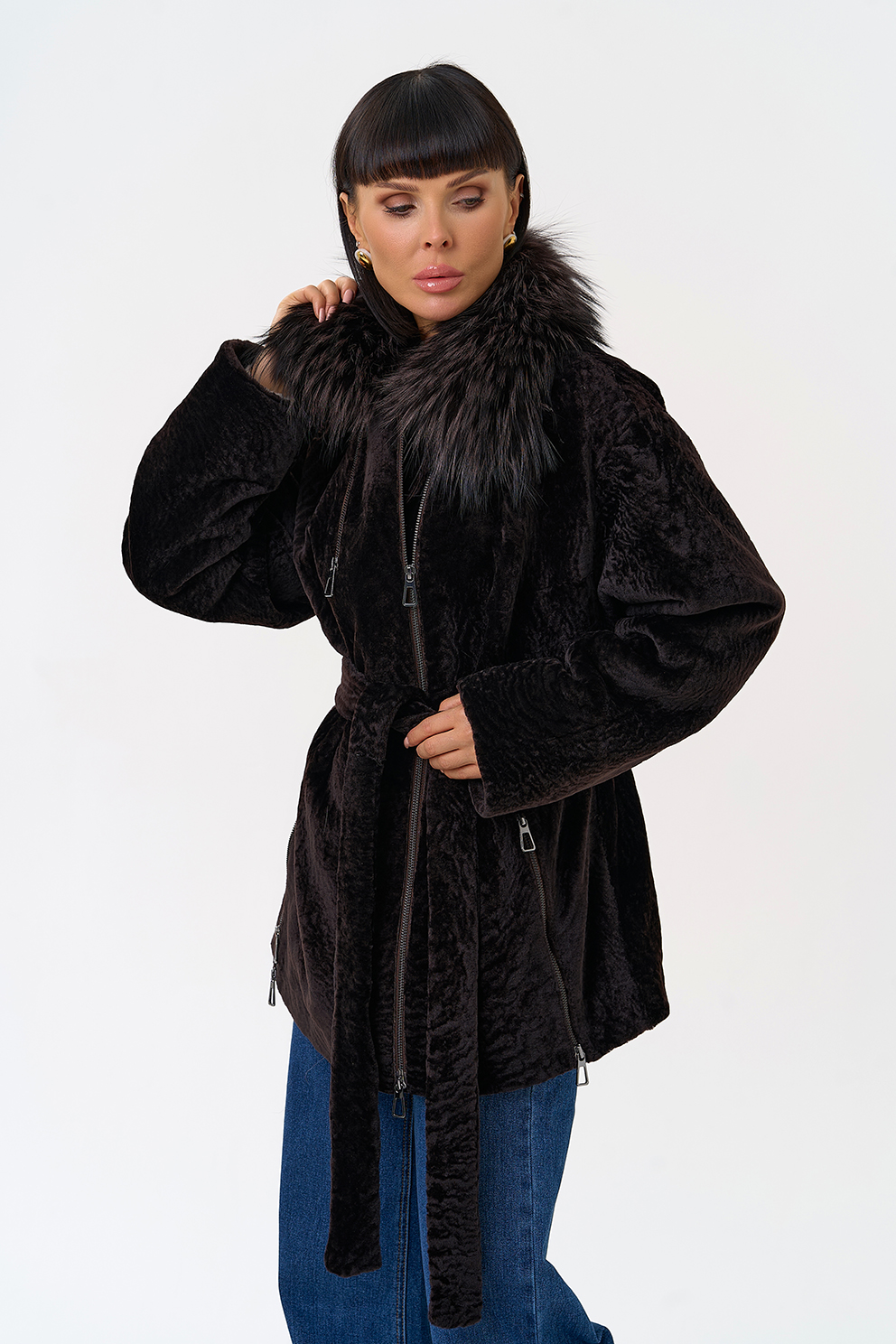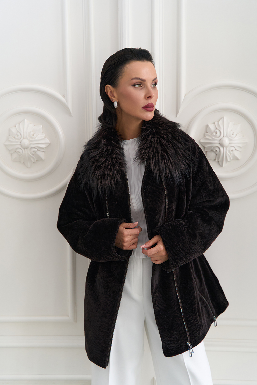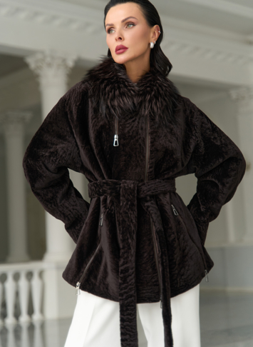 Вид ворота - отложной, отделка чернобурка