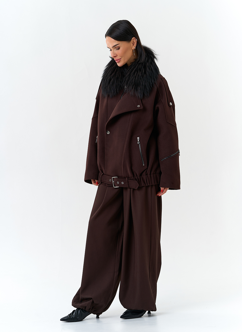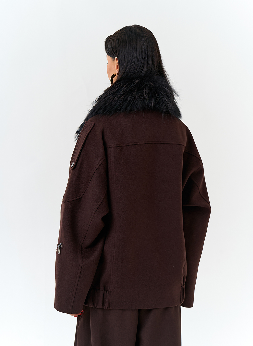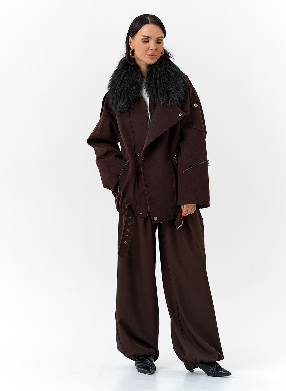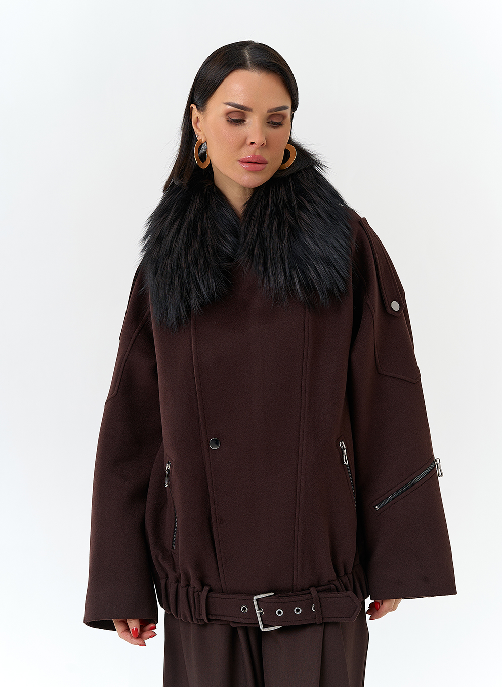Отделка воротника - съемный мех лисы, цвет черный