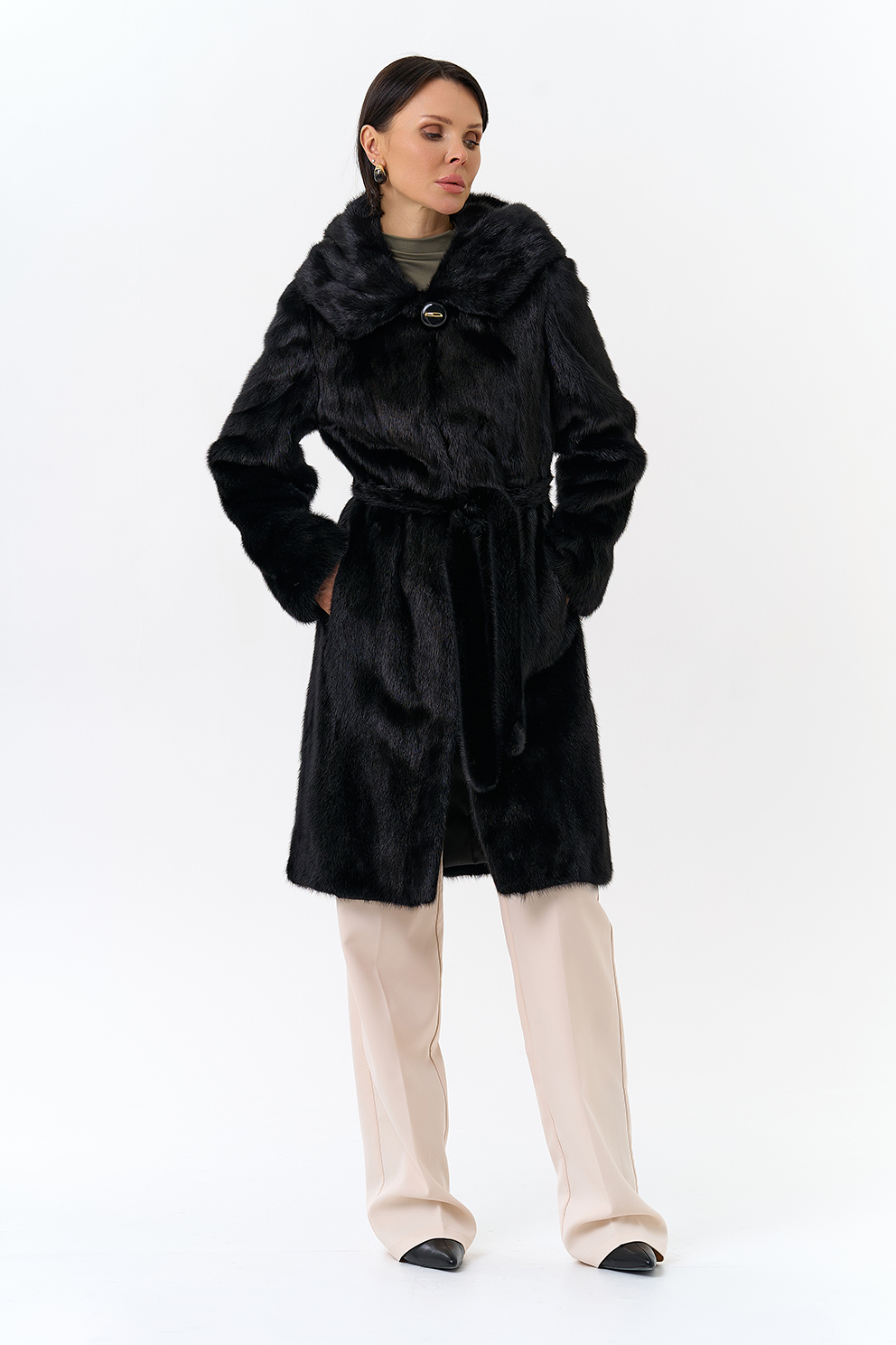 Норковая шуба прямая под пояс